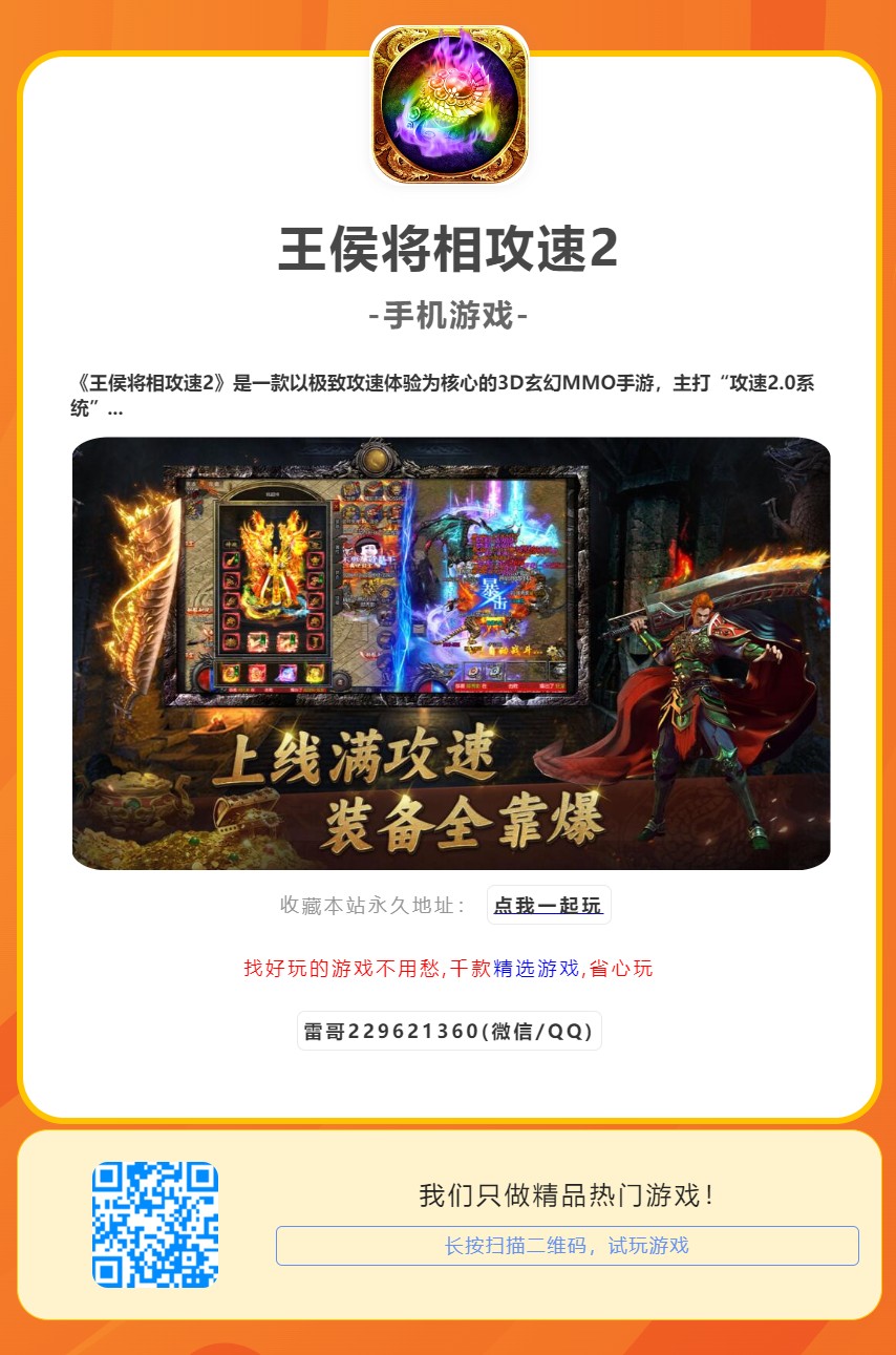 《王侯将相攻速2》是一款以极致攻速体验为核心的3D玄幻MMO手游,主打“攻速2.0系统”与多职业无限连招玩法。游戏突破传统攻速阈值限制,通过装备、符文与灵宠叠加,实现每秒10次以上的高频打击,搭配“全屏割草”“无限控怪”等特色副本,带来爽快战斗体验。零氪玩家可通过策略养成跻身战力榜前列,以下从核心机制到实战技巧全面解析。