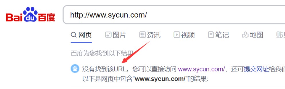 网址2的搜索结果,从搜索结果我们可以看出,该网址还没有被百度收录,而且搜索结果中出现了“没有找到该URL”这个关键字。