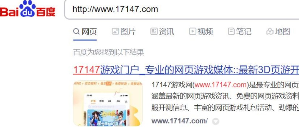 网址1的搜索结果,从搜索结果我们可以看出,该网址已经被百度收录了。