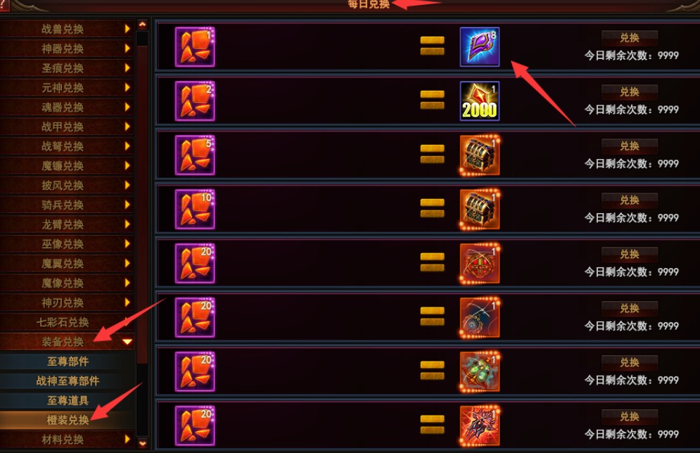 答:每日兑换里的装备兑换--橙装兑换 (得到 神佑宝石)