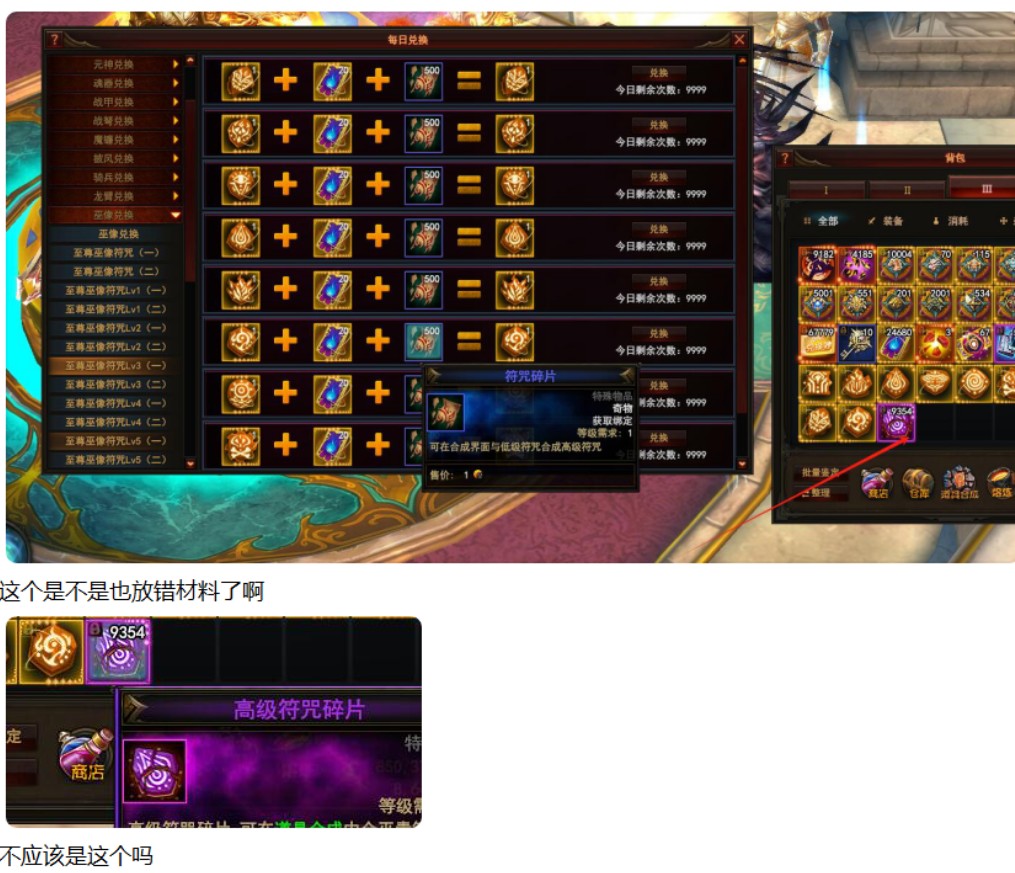 问:网页版黑暗之光公益服里符咒碎片是不是放错了?