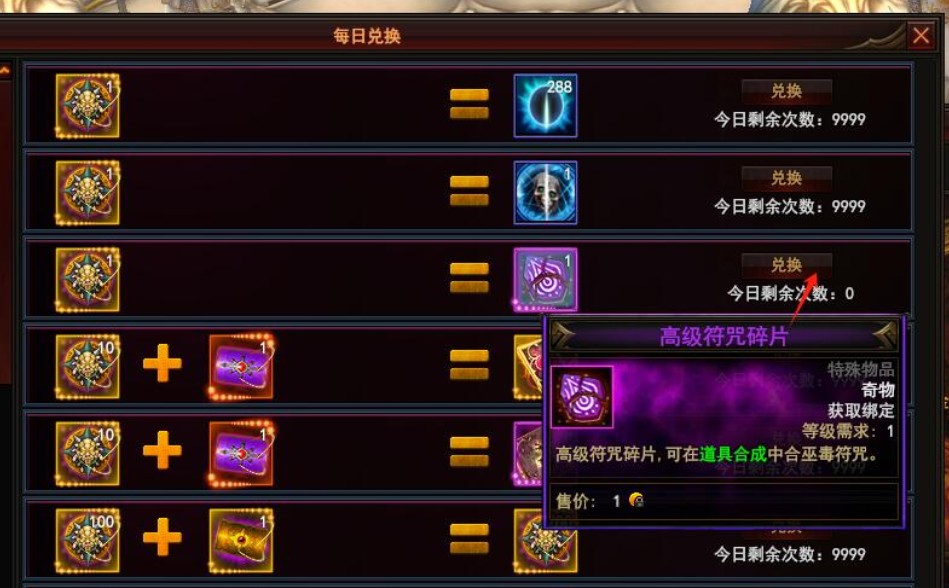 案例:因不知活动获取,导致兑换的高级符咒碎片 用不上了 (1个 万能兑换券= 3个高级符咒碎片)
