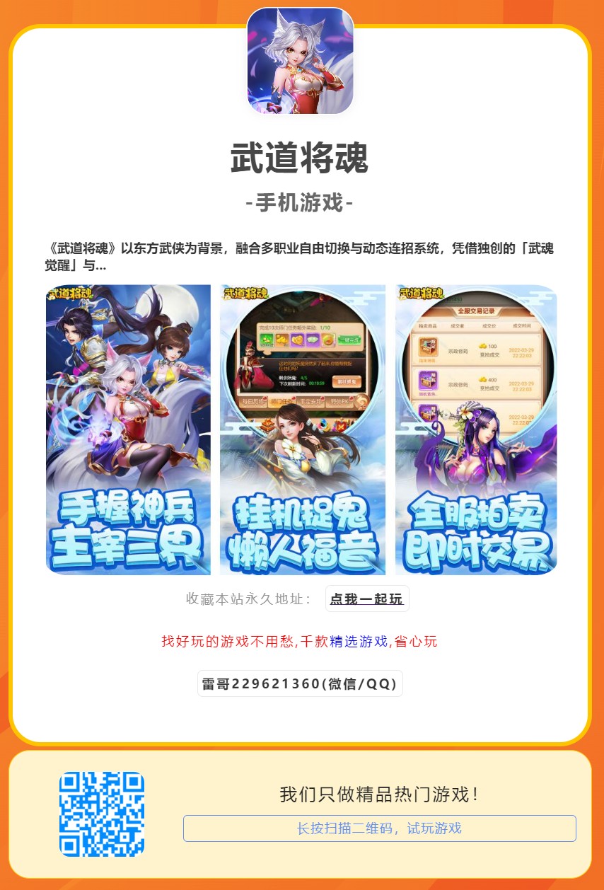 《武道将魂》以东方武侠为背景,融合多职业自由切换与动态连招系统,凭借独创的「武魂觉醒」与「跨服论剑」玩法,上线首周登顶畅销榜Top5。本文从SEO优化视角,详解职业梯度、装备强化与PVP策略,助力玩家制霸武林。