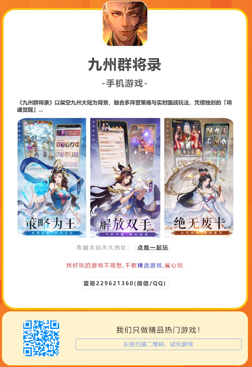 《九州群将录》以架空九州大陆为背景,融合多阵营策略与实时国战玩法,凭借独创的「将魂觉醒」与「动态版图」系统,上线首日登顶策略手游榜。本文从SEO优化视角,详解名将强度、资源分配与国战技巧,助玩家一统九州。