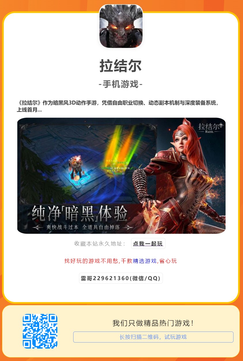 《拉结尔》作为暗黑风3D动作手游,凭借自由职业切换、动态副本机制与深度装备系统,上线首月注册量突破500万。本文从SEO优化视角,详解职业梯度、装备词条与宠物系统策略,助玩家征服暗黑魔境。