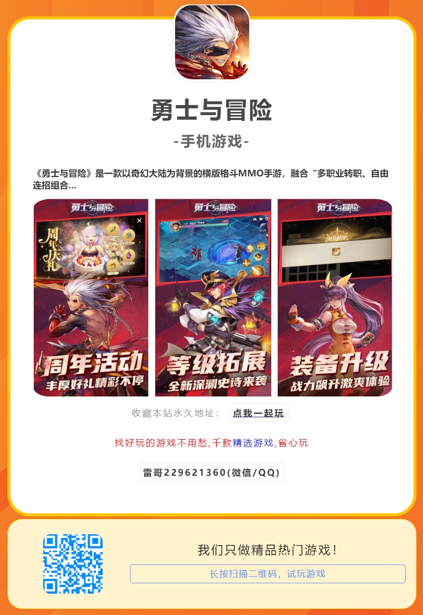 《勇士与冒险》是一款以奇幻大陆为背景的横版格斗MMO手游,融合“多职业转职、自由连招组合、跨服公会争霸”等核心玩法。游戏凭借高清像素风画面、无锁定战斗机制及深渊副本挑战,吸引硬核动作玩家。玩家可选择六大基础职业,通过技能搭配、装备锻造、宠物驯养等系统,打造个性化战斗流派,征战史诗级BOSS与竞技场。