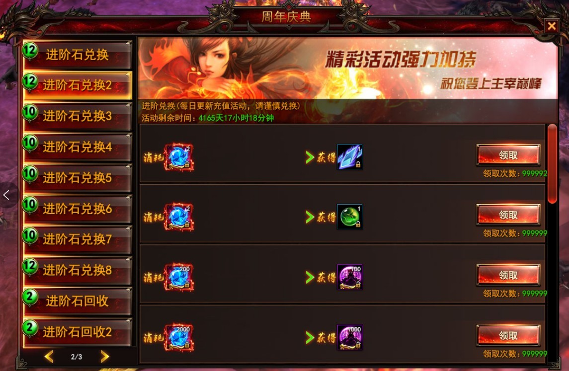 答:周年庆典里兑换