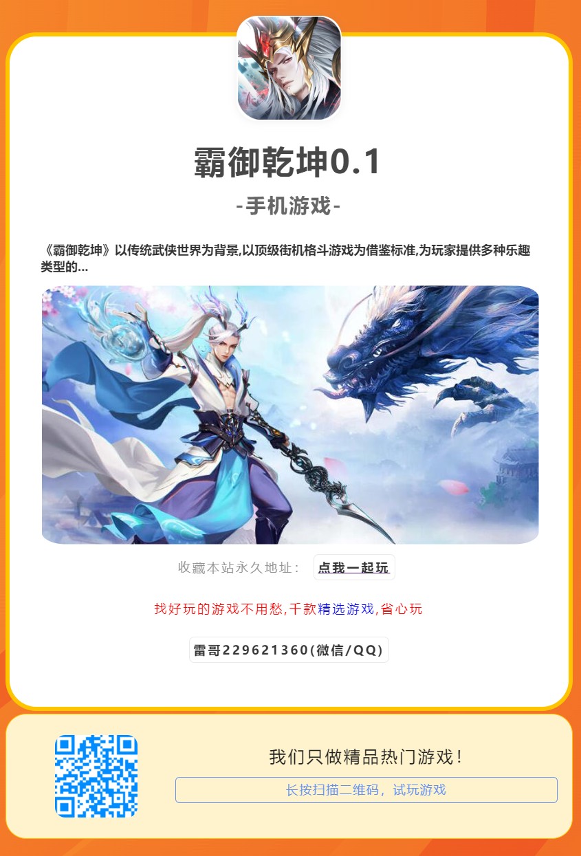 《霸御乾坤》以传统武侠世界为背景,以顶级街机格斗游戏为借鉴标准,为玩家提供多种乐趣类型的特色闯关玩法及多元竞技玩法,力图在传统武侠世界中的恩怨情仇中让玩家体会到侠、义等武侠精髓之所在.