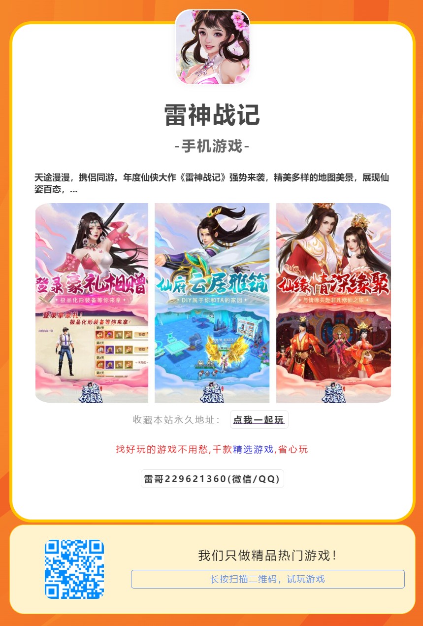 游戏福利:天途漫漫,携侣同游。年度仙侠大作《雷神战记》强势来袭