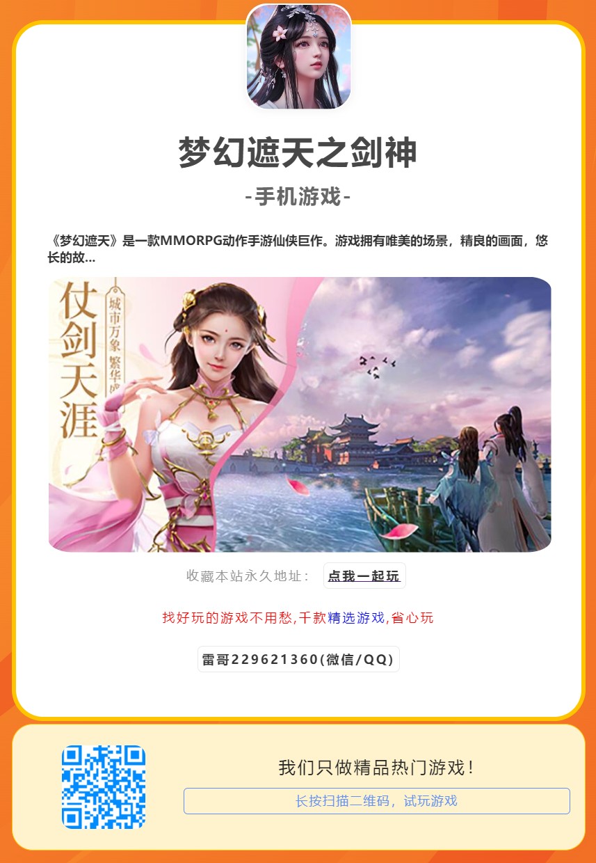 游戏福利:MMORPG动作手游仙侠巨作 再现仙侠长歌