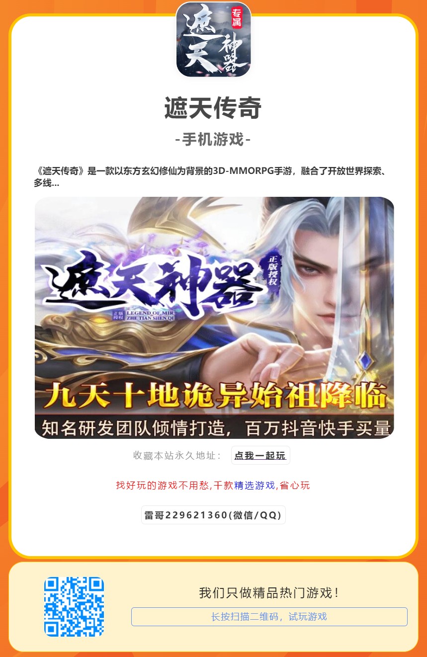手机游戏 : 遮天传奇