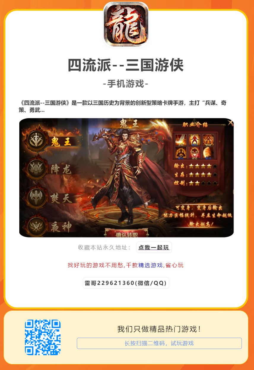 《四流派--三国游侠》是一款以三国历史为背景的创新型策略卡牌手游,主打“兵谋、奇策、勇武、天命”四大流派体系,玩家可通过自由组合武将流派打造专属战术。游戏还原赤壁之战、官渡之战等经典战役剧情,并融入武将觉醒、兵种克制、动态战场等创新玩法。美术采用国风水墨与动态立绘结合,搭配实时跨服联盟战与赛季制排名玩法,兼顾策略深度与操作爽感,成为三国题材手游中的差异化力作。