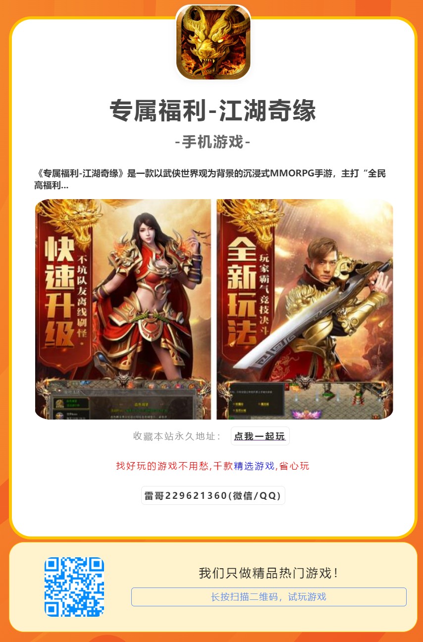 游戏福利:热血刺激的传奇游戏,波澜壮阔的魔幻世界向你开启