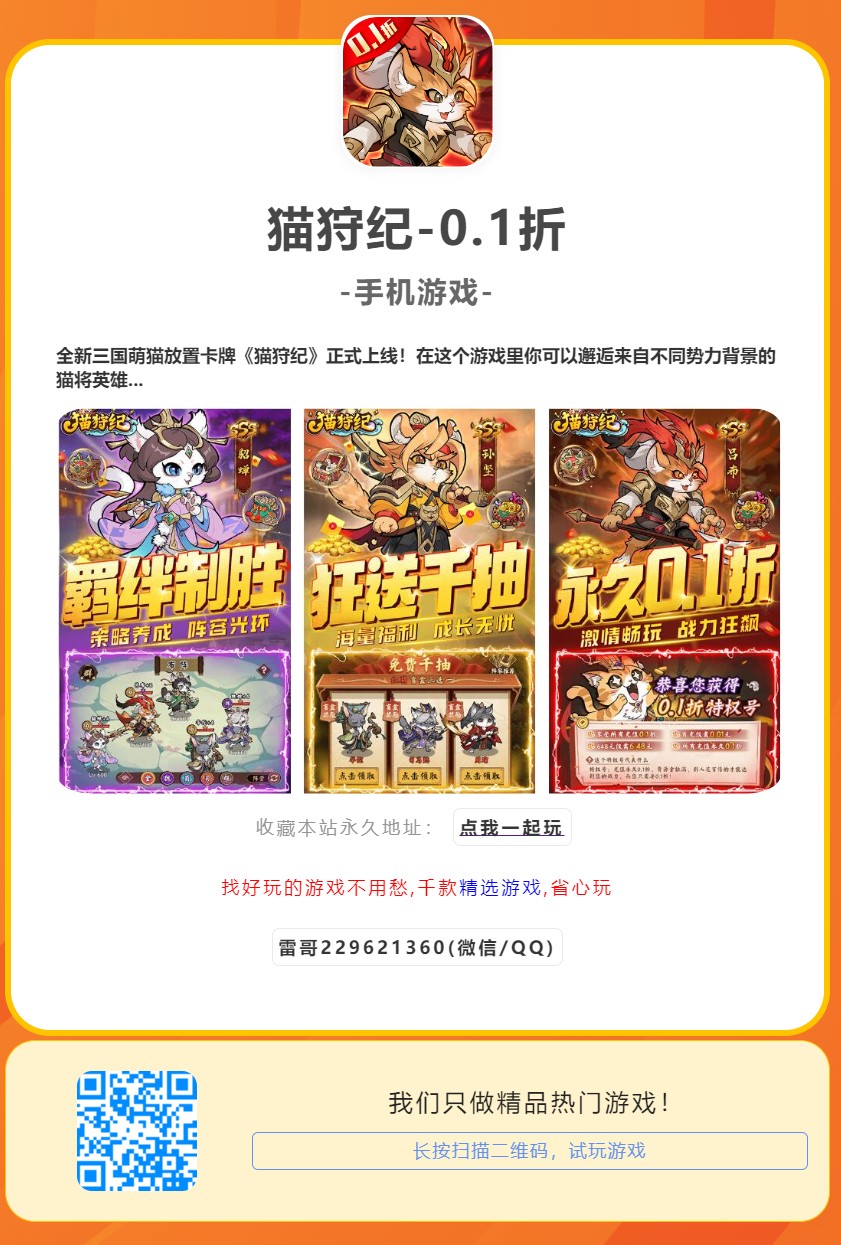 手机游戏 : 猫狩纪-0.1折