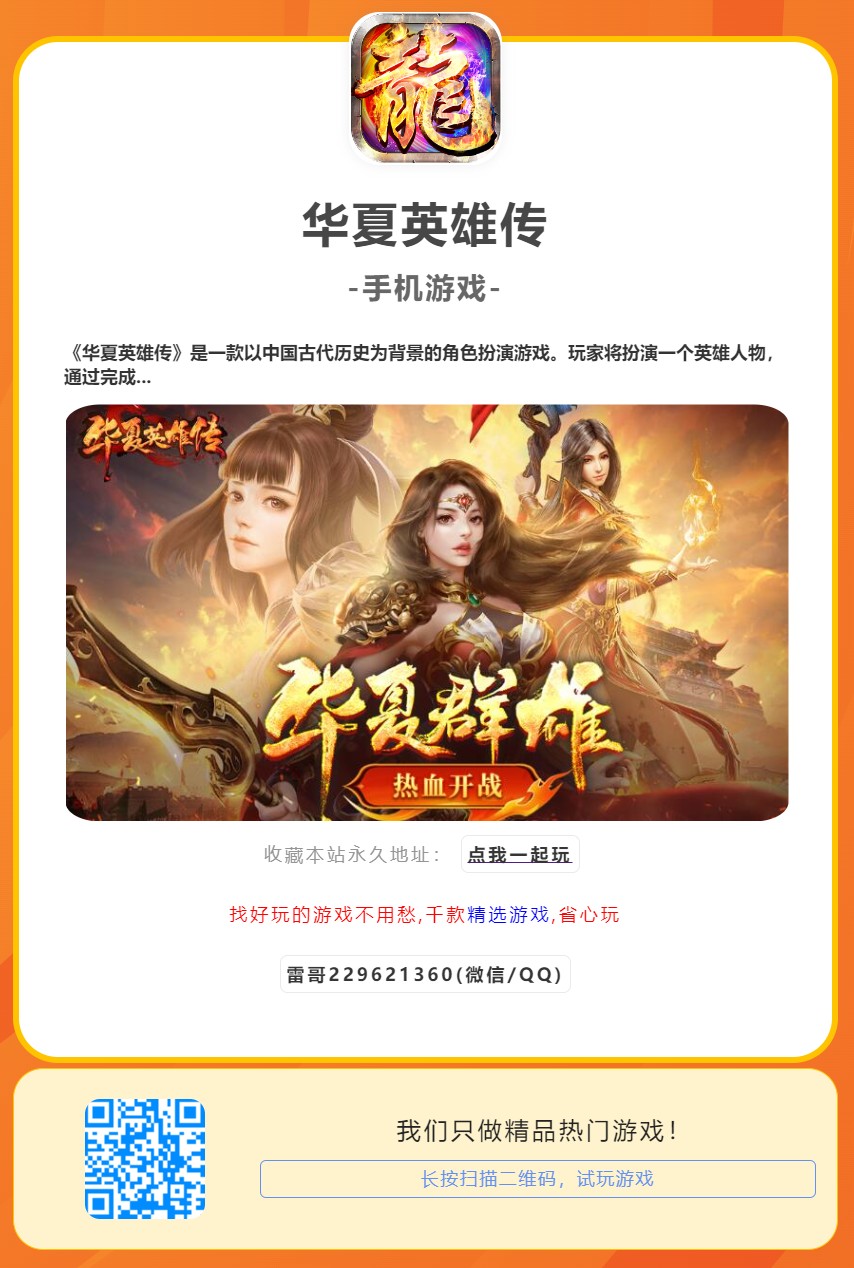 手机游戏 : 华夏英雄传