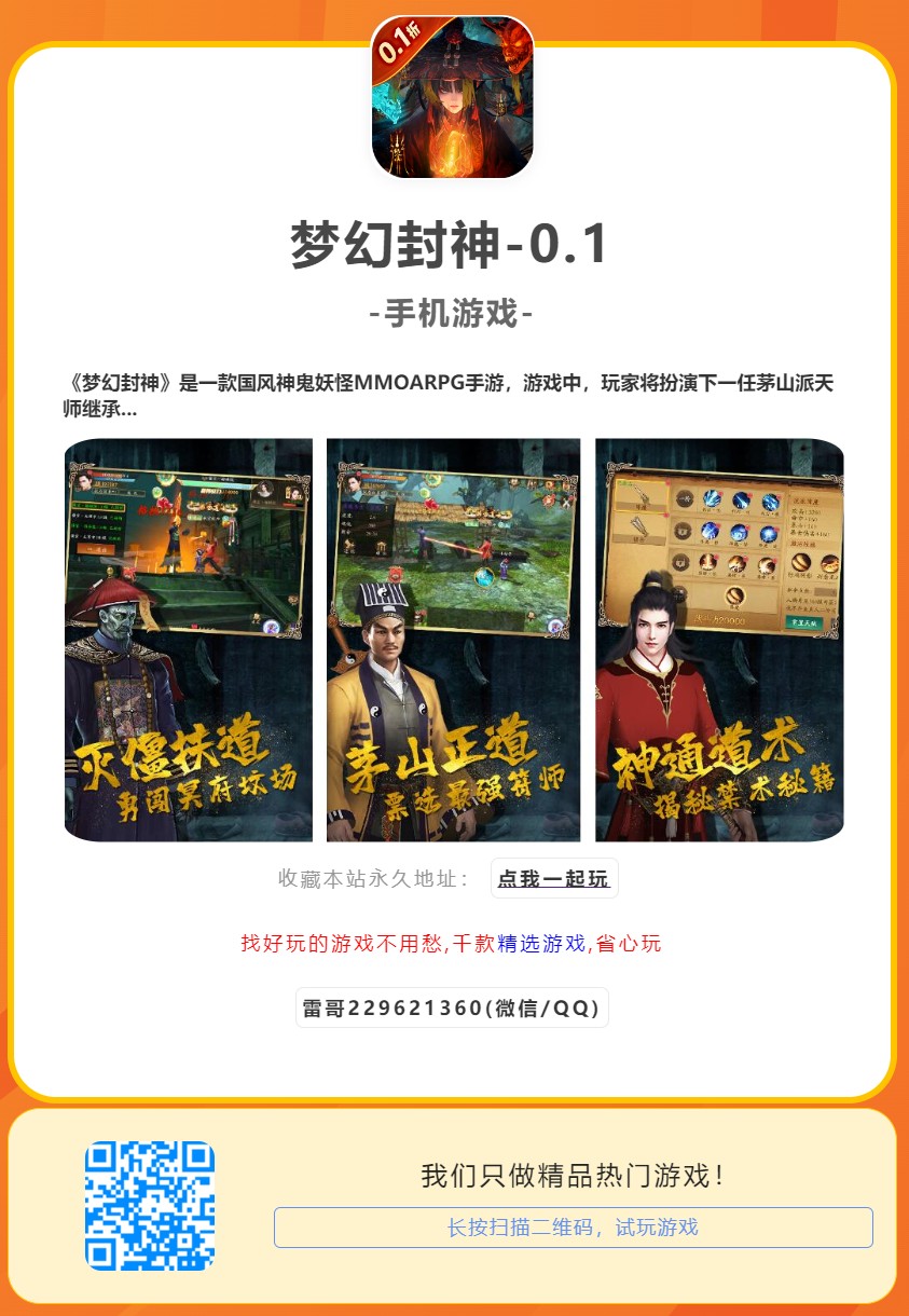 《梦幻封神》是一款国风神鬼妖怪MMOARPG手游,游戏中,玩家将扮演下一任茅山派天师继承人,以降妖除魔为己任,与赫赫有名的驱魔家族“南毛北马”一起施展道术神通,在风雨飘摇的民国与将臣展开世纪大战。