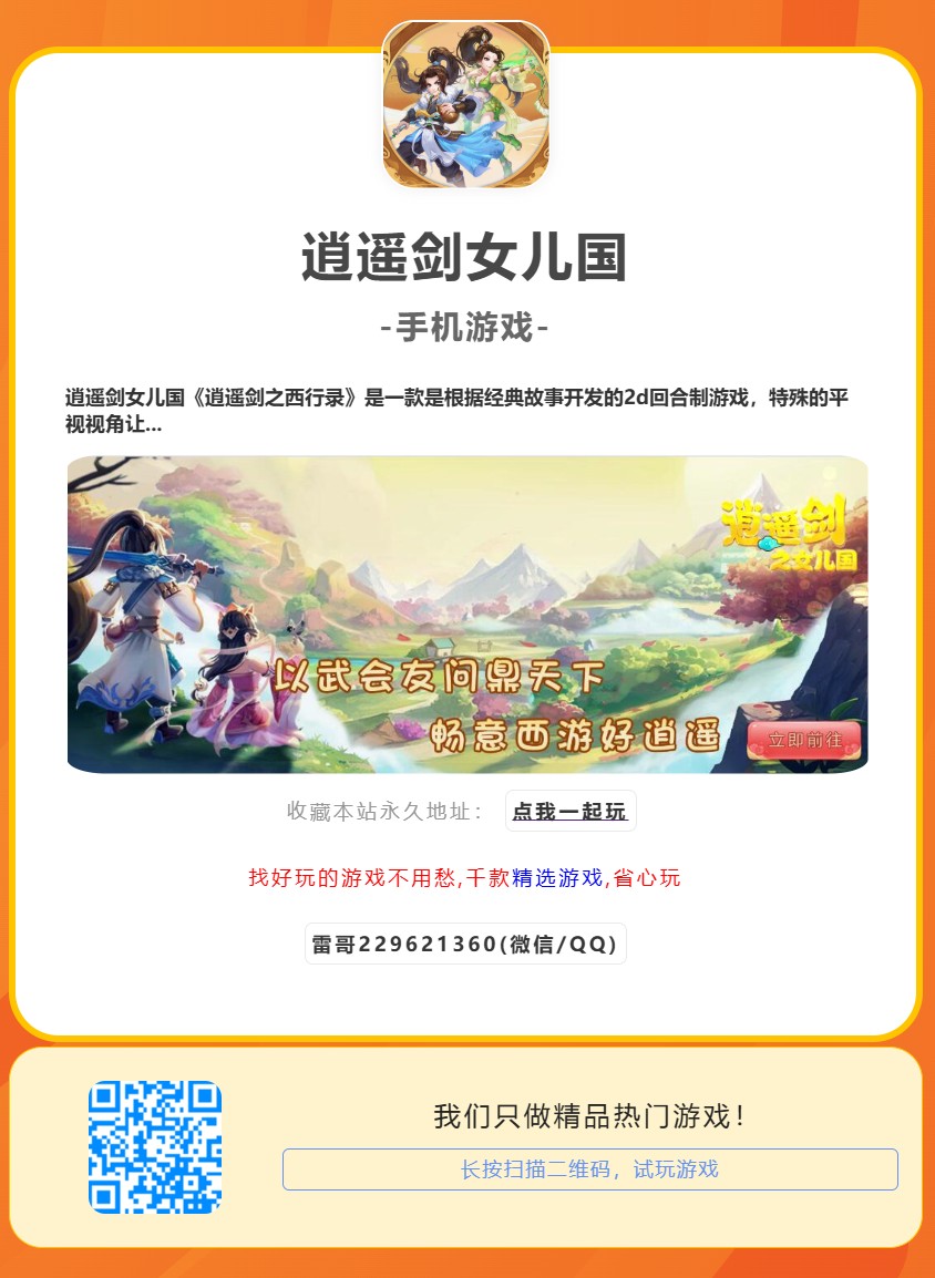 逍遥剑女儿国《逍遥剑之西行录》是一款是根据经典故事开发的2d回合制游戏,特殊的平视视角让玩家感受到了2D回合制手游的魅力,绚丽的技能效果结合萌版的角色造型令人印象深刻,丰富的活动加上多样成长路线也提高了耐玩性,世界BOSS等多人联机战斗机制可玩性极高,融入了华夏神话的故事情节也符合中国玩家的认知。