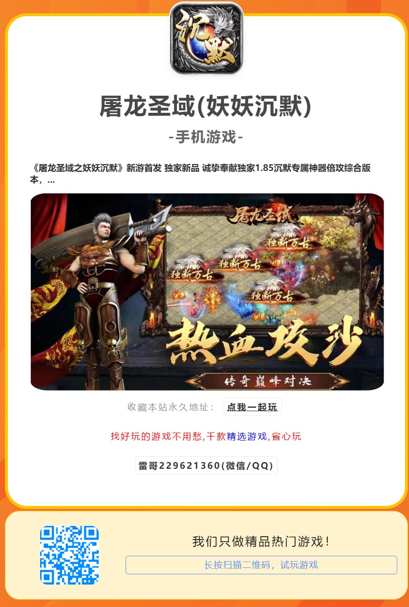 手机游戏 : 屠龙圣域(妖妖沉默)