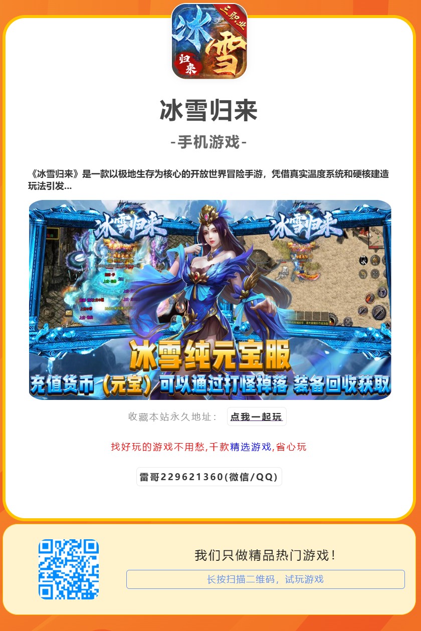 《冰雪归来》是一款以极地生存为核心的开放世界冒险手游,凭借真实温度系统和硬核建造玩法引发热议。本文详解游戏生存机制、资源采集优先级、装备合成公式及冰原BOSS打法,助你在暴风雪中站稳脚跟。