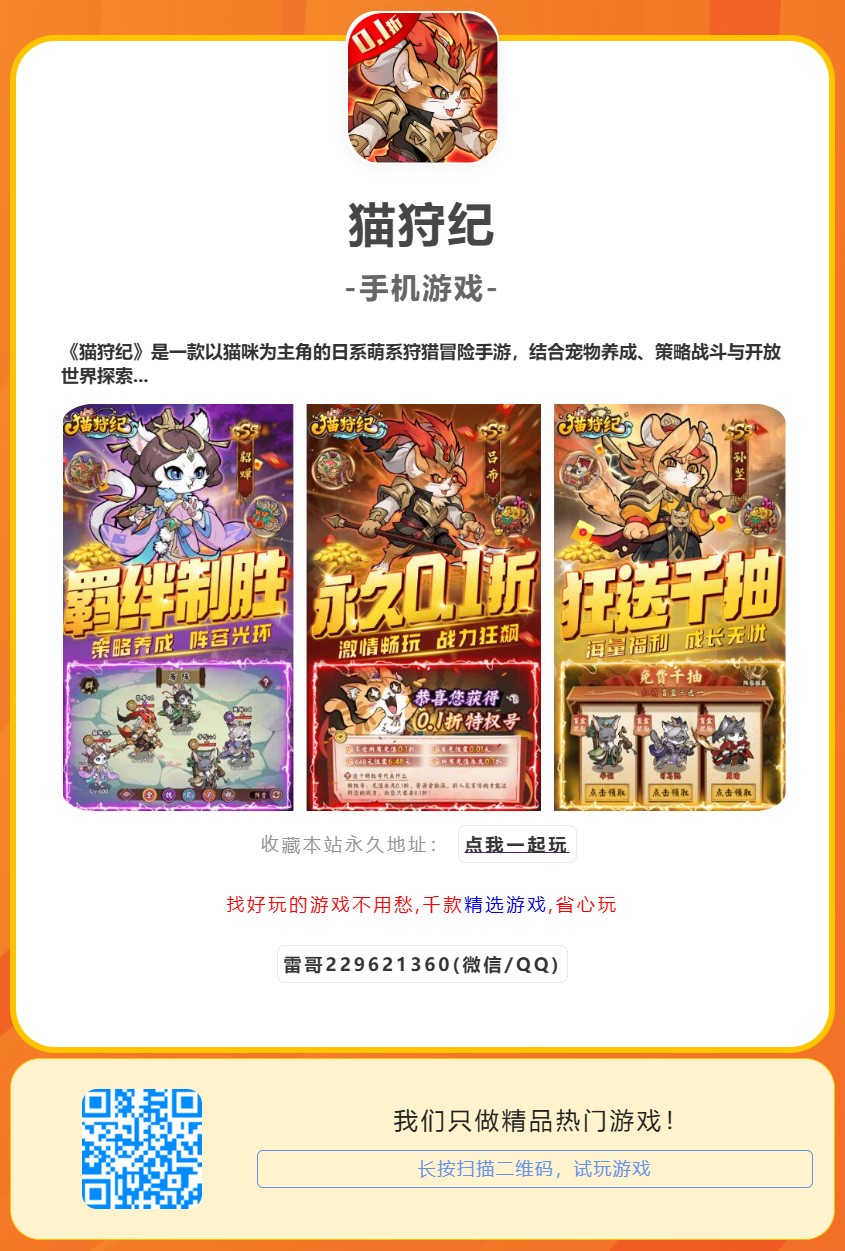 游戏福利:以猫咪为主角的日系萌系狩猎冒险手游
