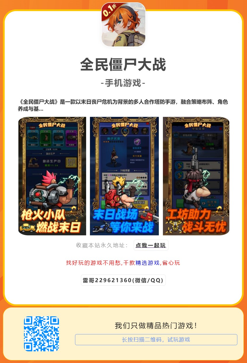 游戏福利:以末日丧尸危机为背景的多人合作塔防手游