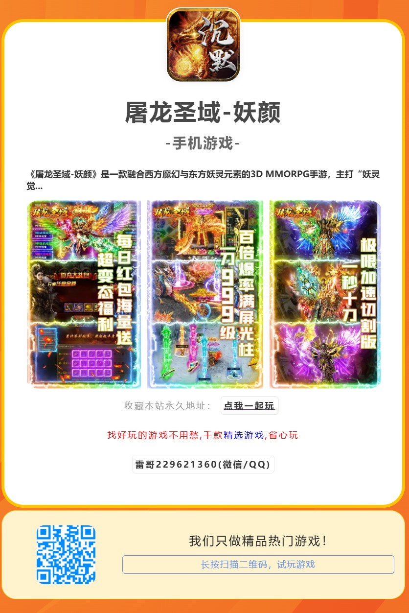 《屠龙圣域-妖颜》是一款融合西方魔幻与东方妖灵元素的3D MMORPG手游,主打“妖灵觉醒”“跨服争霸”与高自由度探索玩法。玩家将化身猎魔者,在圣域大陆驯服九尾妖狐、上古龙魂等传说生物,化身妖灵形态战斗,挑战深渊魔王与跨服领土战。游戏采用暗黑美学画风,结合动态妖灵变身、昼夜生态交互及无锁定连招机制,打造沉浸式魔幻冒险世界。