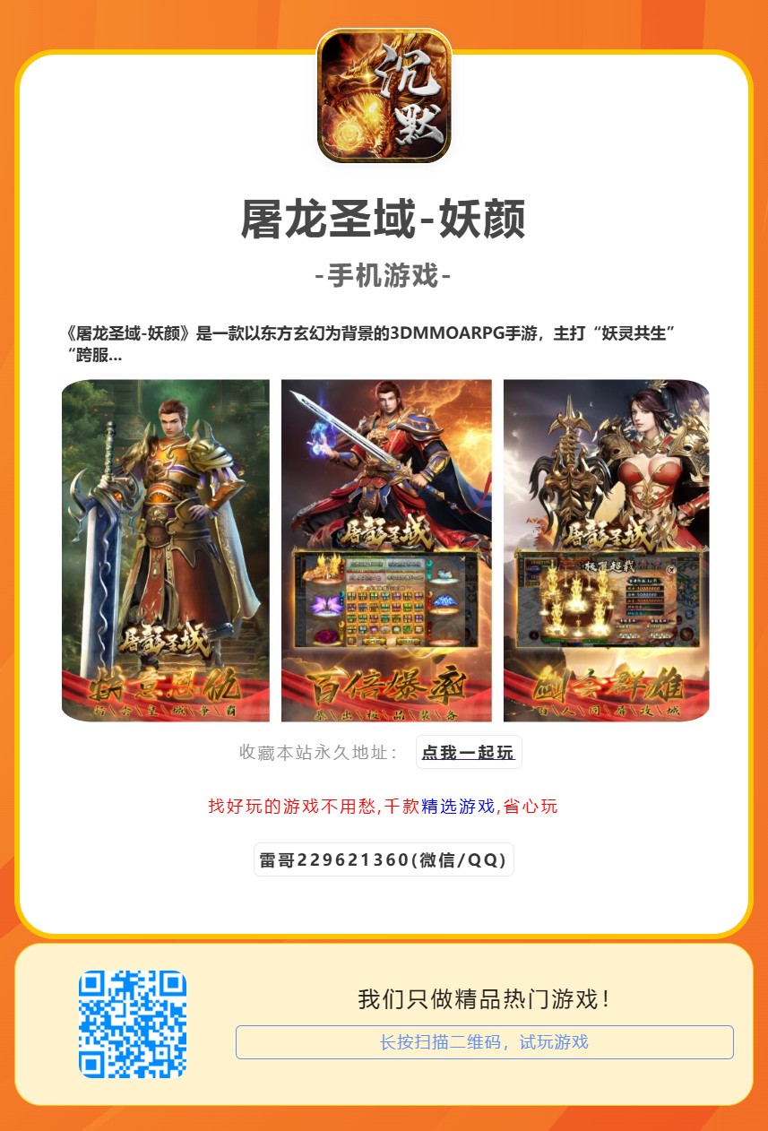 《屠龙圣域-妖颜》是一款以东方玄幻为背景的3DMMOARPG手游,主打“妖灵共生”“跨服屠龙”“高福利0.1折”三大核心玩法。游戏构建人、妖、龙共存的洪荒世界,玩家可化身修真者,驯服上古妖灵,参与跨服巨龙讨伐与阵营对抗。独特“妖颜”系统支持自由切换妖灵形态,解锁专属技能与华丽外观。其最大亮点为“0.1折超低充值”体系,每日上线1元购万元资源礼包,大幅加速战力成长,吸引喜爱高爆率、强社交的玄幻玩家。