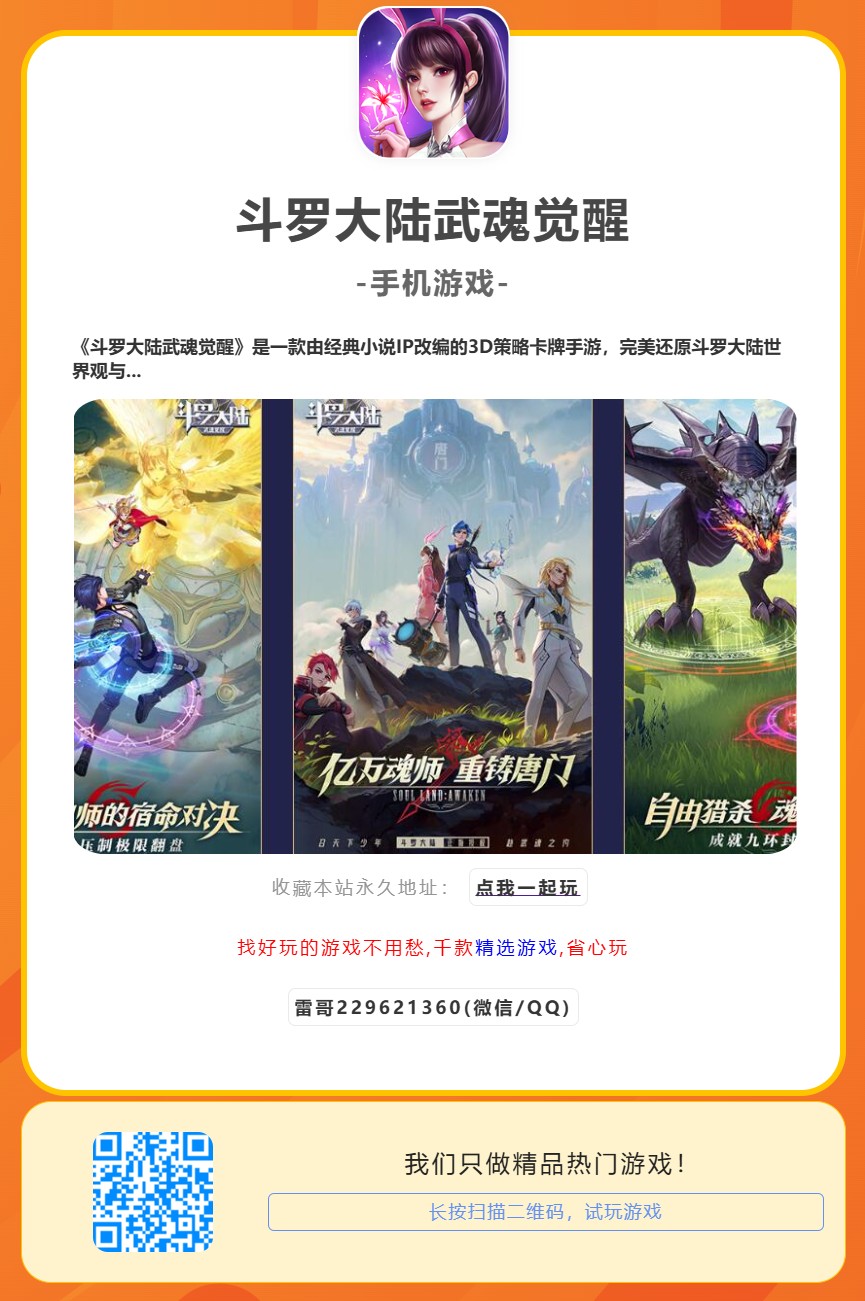 《斗罗大陆武魂觉醒》是一款由经典小说IP改编的3D策略卡牌手游,完美还原斗罗大陆世界观与角色设定。游戏围绕“武魂觉醒”“魂环搭配”“魂师阵容”三大核心玩法,玩家可收集史莱克七怪等经典角色,组建魂师战队,挑战魂兽森林、杀戮之都等副本,体验策略布阵与魂技连携的深度战斗。其特色“0.1折超值充值”与“高爆率魂骨”系统,大幅降低养成门槛,吸引原著粉丝与策略卡牌玩家。