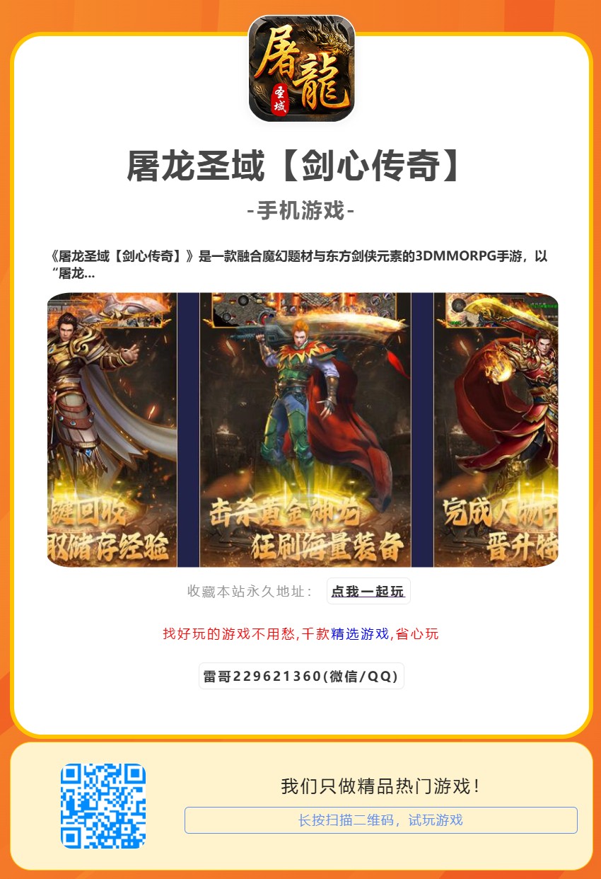 《屠龙圣域【剑心传奇】》是一款融合魔幻题材与东方剑侠元素的3DMMORPG手游,以“屠龙”与“剑心觉醒”为核心玩法,打造跨服战场、自由交易、巨龙讨伐等高燃体验。玩家可化身剑士、法师、刺客等职业,觉醒上古剑心之力,挑战深渊巨龙,争夺圣域领土。其特色“0.1折超值充值”与“屠龙高爆率”系统,大幅降低养成门槛,吸引硬核PK与策略玩家。