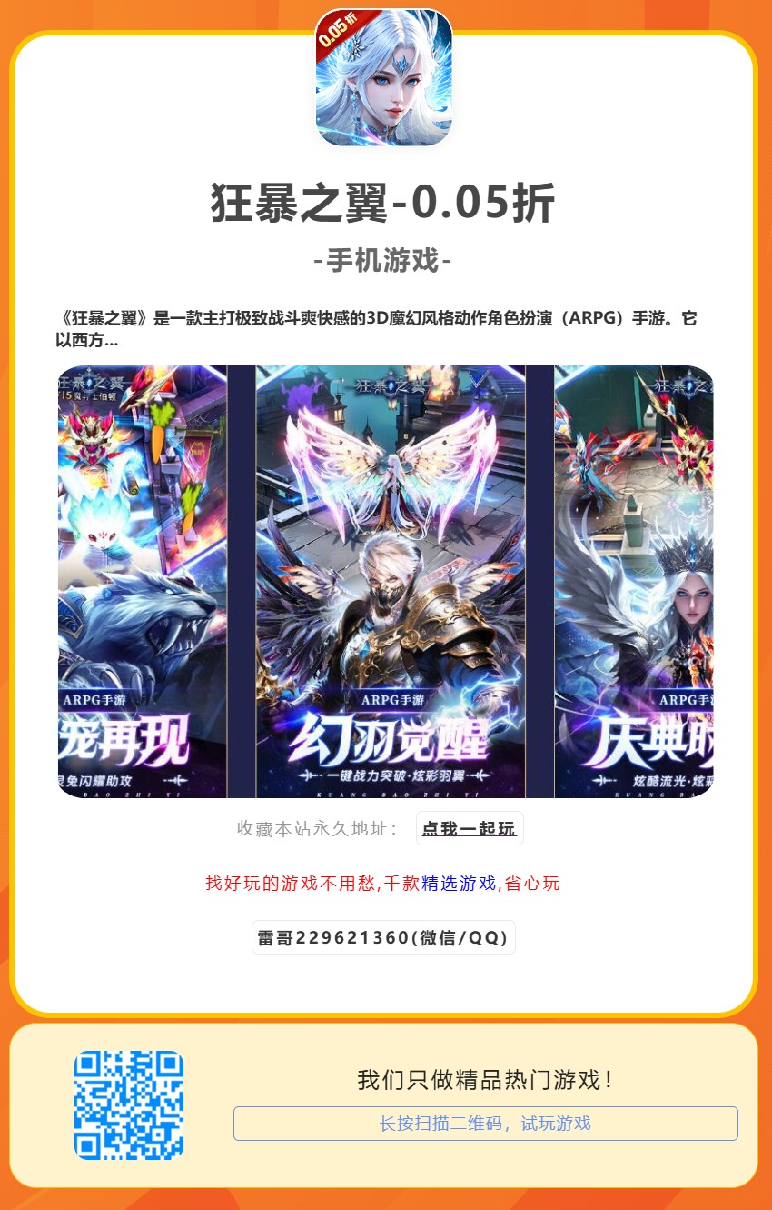 《狂暴之翼》是一款主打极致战斗爽快感的3D魔幻风格动作角色扮演(ARPG)手游。它以西方魔幻世界为背景,玩家将化身强大的职业战士,投入一场正邪对抗的史诗之战。游戏凭借流畅华丽的技能特效、震撼的视听冲击力以及深度角色成长系统,为玩家带来畅快淋漓的动作游戏体验。