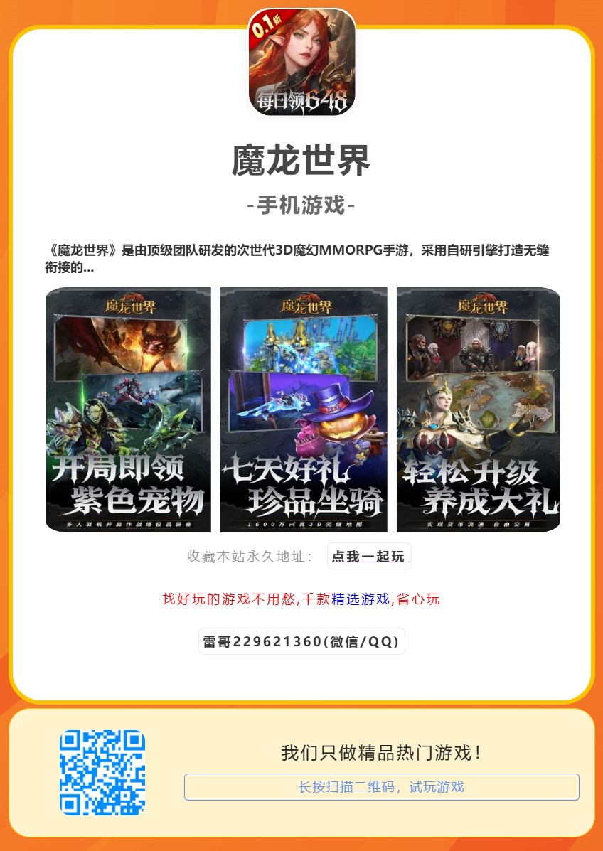 《魔龙世界》是由顶级团队研发的次世代3D魔幻MMORPG手游,采用自研引擎打造无缝衔接的千万平米奇幻大陆。游戏以“龙族复苏”为核心主线,玩家将在人族、精灵、矮人、暗裔四大种族与八大职业体系中自由成长,驾驭上古巨龙参与空陆立体战争,探索失落的泰坦遗迹与动态开放世界事件,重塑艾瑞亚大陆的命运篇章。