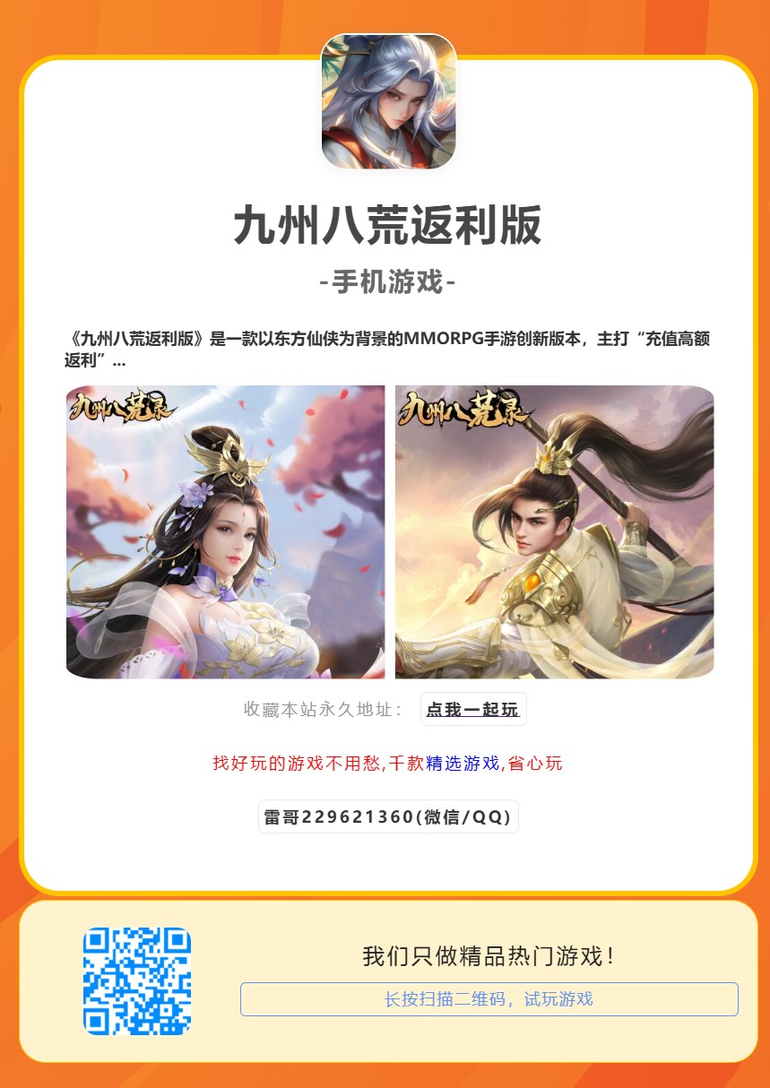 《九州八荒返利版》是一款以东方仙侠为背景的MMORPG手游创新版本,主打“充值高额返利”特色机制。玩家充值任意金额均可获得300%元宝返还(如充值100元立得30000元宝),同时每日登录赠送VIP经验、稀有坐骑碎片及强化石。游戏构建了开放大世界地图,包含九大修真门派(剑宗、丹鼎阁、御兽门等)、百套仙器套装和实时跨服战场。
