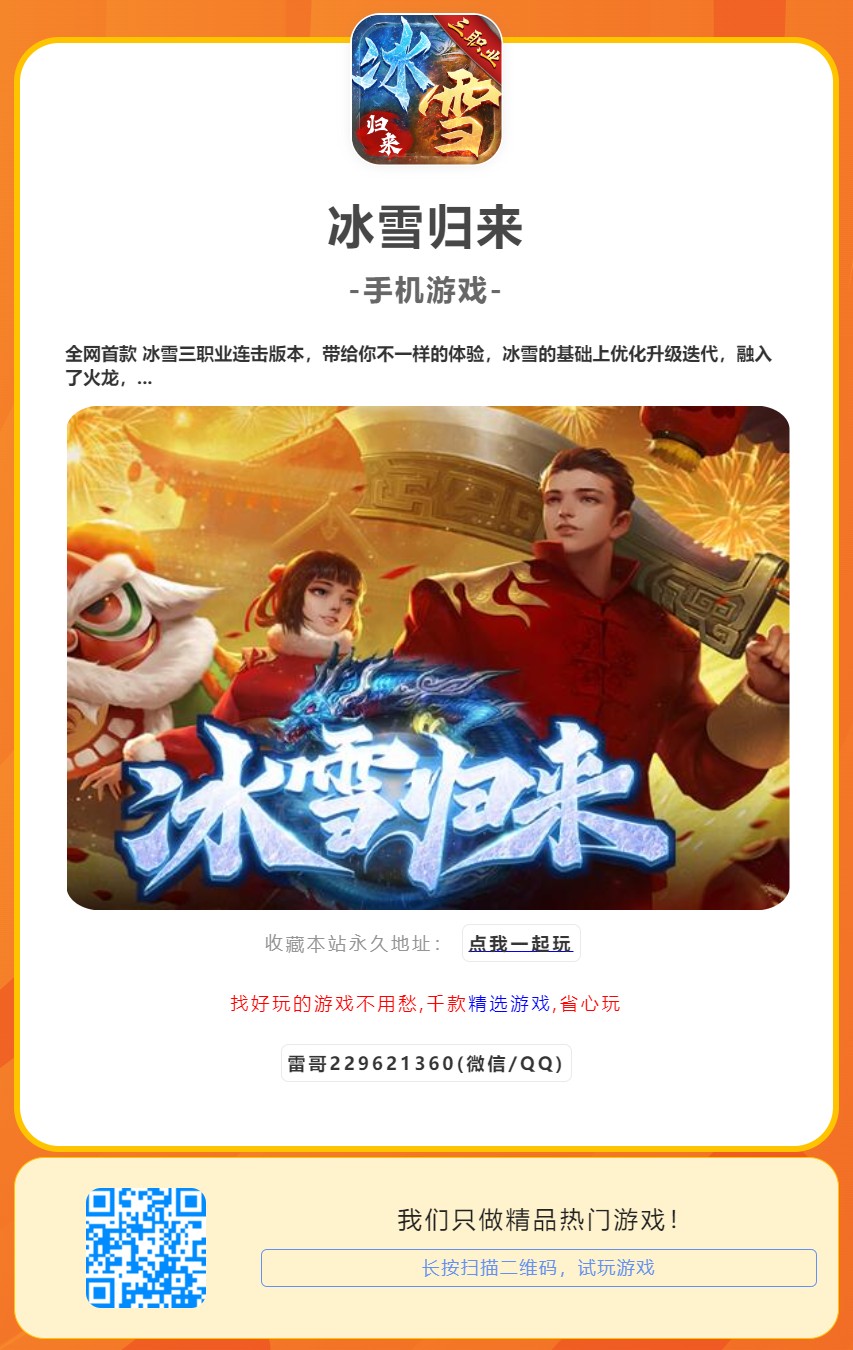 全网首款 冰雪三职业连击版本,带给你不一样的体验,冰雪的基础上优化升级迭代,融入了火龙,沉默,专属,剧情元素,再独创内功,心法,战法道特色连击技能。PK体验感直接拉满。可氪,可肝,可白嫖,可搬砖扛米。